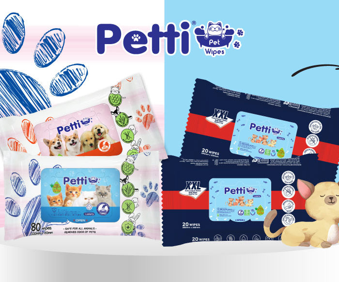 Petti Wipes are specially made for pets with sensitive skin. Infused with soothing Aloe Vera and Vitamin E, and free from alcohol, parabens, and harsh chemicals, these wipes are safe for daily use on dogs, cats, and other delicate companions. Whether it’s for paws, fur, or messes, Petti keeps your pet clean, comfortable and happy.