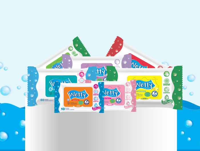 Wetty wipes are made with 99% purified water, filtered through a 19-step process to ensure the highest quality and safety for your skin.